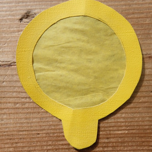 4. Cut coloured tissue paper to fit onto the back of the coloured circles, matching the primary colours to their corresponding frames that you just cut out. If you made the frames one colour, glue each primary colour on each frame. The most impor step is using coloured tissue paper in primary colours - red, yellow and blue.