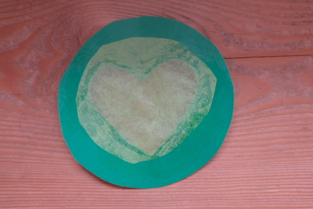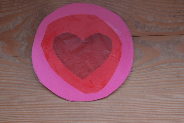 You may want to create all of the colours to experiment with! Here are the cutout hearts from the underside - the tissue paper is glued onto the paper frame.
