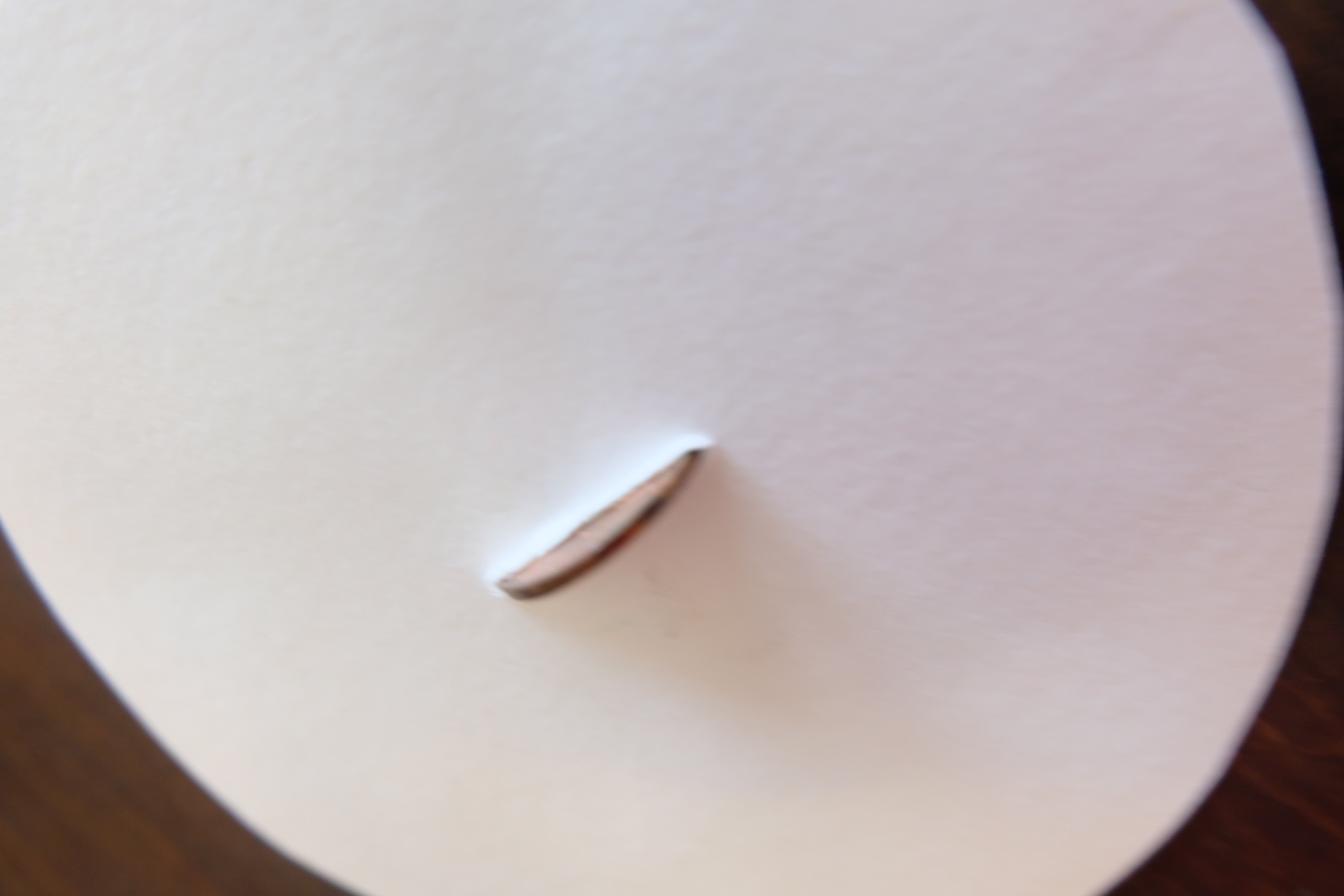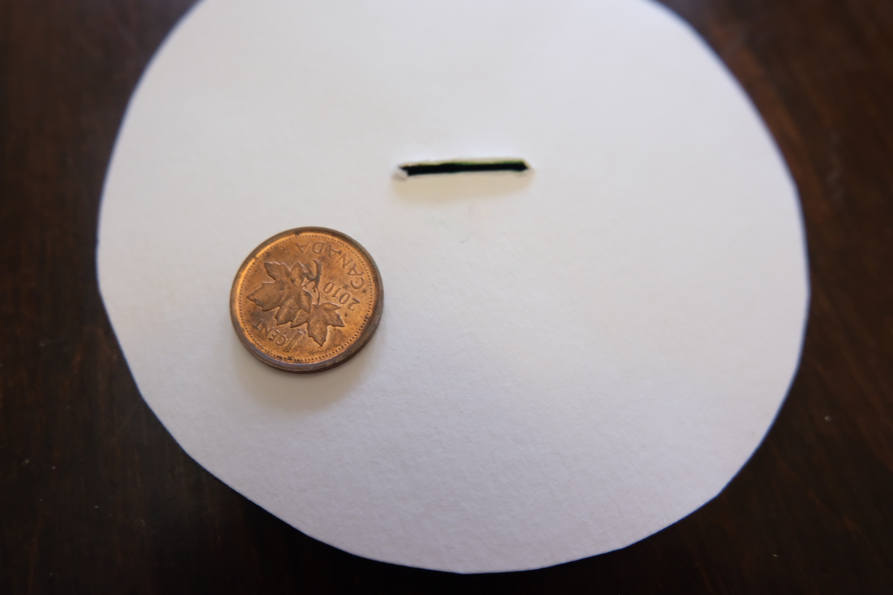 3. make a perfect slit on the middle to fit a penny perfectly.